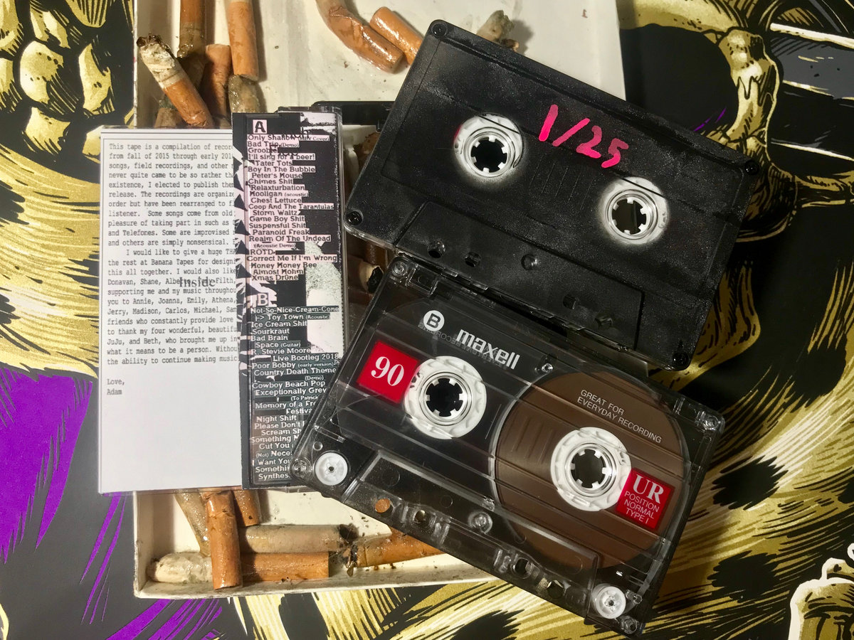 All the Adam Reeve classics all conveniently packaged into one tape! Hand spray painted with each addition marked by paint, these tapes embody the spirit of Adam! All dubbed on Maxell 45's for the low fidelity grime that we all love!